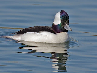 Bufflehead photo from www.flyways.usA significant increase in waterfowl migration activity has occurred at Bantam Lake in the past week. This coincides with more and more reports of ponds and portions of lakes in Vermont, upstate New York, Quebec, and Ontario icing over. Unlike last year, and many other past years, Bantam Lake was still ice-free as of this morning, 12/15/2011. Relatively mild conditions since early November are the reason for this. While several nights have seen temperatures dip into the 20's, and a couple of recent nights saw temperatures go down into the teens, this has not been enough for ice to form on the Lake. Cemetery Pond and our marshes have iced-over a few times, but they usually opened-up again when daytime temperatures climbed into the 40's. This has been great for waterfowl, as it has provided them with plenty of foraging area. Species which have increased the most in the past week have included Ring-necked Duck (43 on the 13th), Bufflehead (31 on the 13th), Common Goldeneye (35 on the 13th), Hooded Merganser (53 on the 13th), and Common Merganser (55 on the 13th). Also of note were 6 Gadwall on the 13th, 2 Northern Shovelers almost every day, 2 Northern Pintails on the 14th, 4 Lesser Scaup on the 13th, 2 White-winged Scoters on the 8th, a Long-tailed Duck on the 9th, a Ruddy Duck on the 11th, a Red-throated Loon on the 7th, Pied-billed Grebes on several days, and a Red-necked Grebe on the 11th and 12th. In addition, as many as 87 American Coots have been seen daily at the Lake's North Bay. At this point it should be noted that the vast majority of these sightings have come from N. Bay and Pt. Folly. South Bay has produced virtually nothing, and the central section has mainly yielded fish-eating divers. It should also be noted that this number and diversity of waterbirds is above average for so late in the migration season here, even in other years when the Lake has remained ice-free. This could be a product of generally mild conditions all over the northeast, more birds because of their highly successful breeding activity last summer, or an abundance of food at Bantam Lake. Most likely, it is a combination of these things. Whatever it is, we are hopeful that these birds will stay around for the Christmas Bird Count on the 18th, and that a few more will join them. As it is, all of the sightings from today are in the official count period. If you go out to look for these birds, please report your observations to ebird, and share them with the White Memorial Archives.